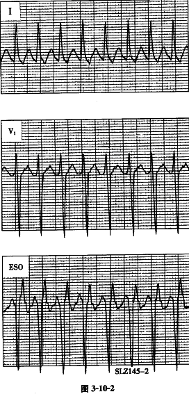 患者女性,36岁,因反复发作心慌行食管电生理检查,心动过速时的心电图如图3-10-2(图中ESO为食管心电图)所示,该心动过速的类型是