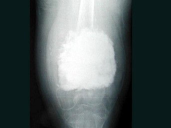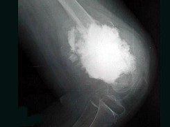 女,10岁,左大腿疼痛,夜间加重,肿胀明显,结合图像,最可能的诊断是()