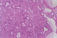 • E.形成小叶结构,增生的腺管受挤压明显,呈长圆形,外无肌上皮
